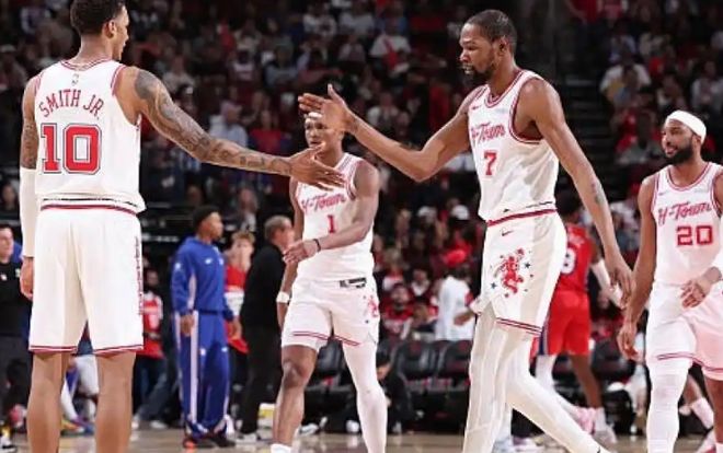 我们把视线转移到另一场比赛,火箭主场PK76人。火箭延续了近期团队作战,多点开花的风格,全队有4人得分在15分,杜兰特18投10中,三分球6投3中,6罚6中狂砍了29分7篮板5助攻,阿门和史密斯都是拿到了19分,替补的伊森10投5中贡献了15分8篮板。本场比赛,火箭最多领先了28分,最终以113-102的比分过关,豪取8连胜。火箭除了做好防守,还让乔治哑火,后者8投仅2中只有7分,另外马克西的正负值是-18、乌布雷的正负值是-21!