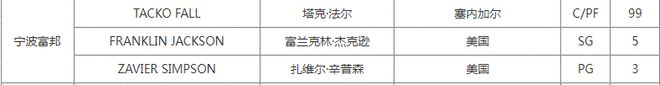 如此一来,宁波男篮还剩下3位外援,分别是辛普森、法尔与杰克逊。