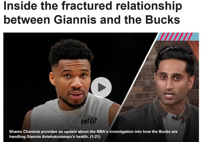 名记Shams撰写了一篇披露字母哥与雄鹿队内幕的爆料长文,其中指出字母哥与雄鹿队关系已经破裂,双方做好了休赛期分手的准备。