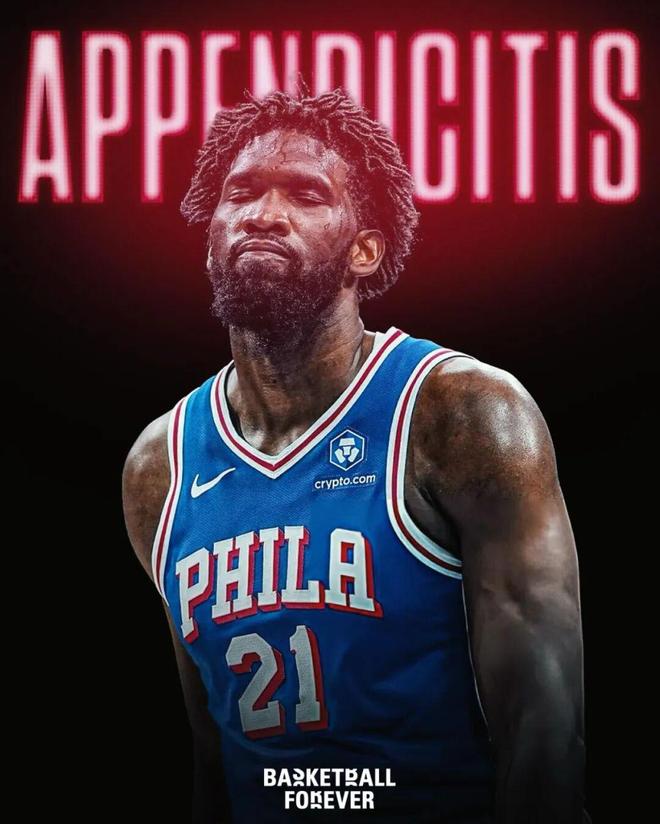 来自名记Shams的最新报道,76人球星恩比德被诊断出急性阑尾炎,将于当地时间今天下午在休斯顿紧急接受手术治疗。
