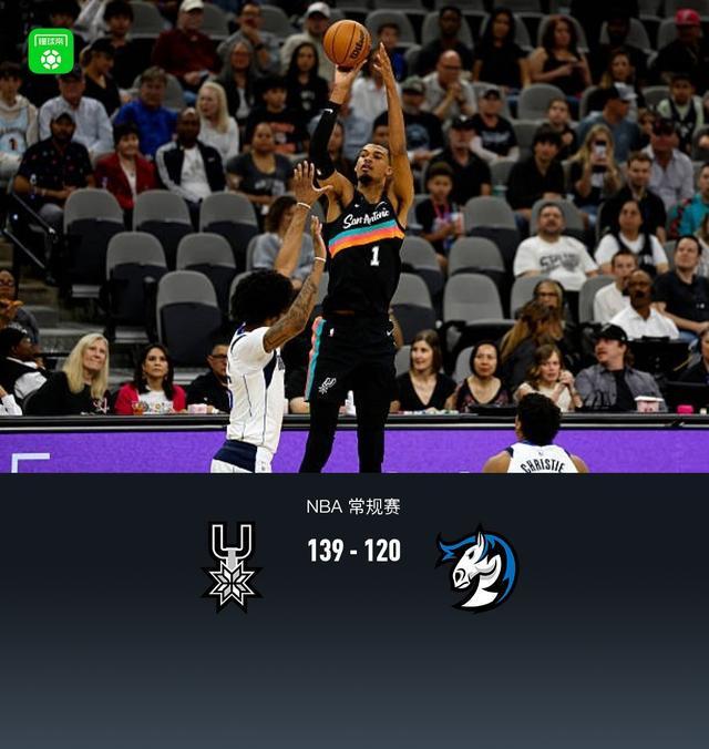 马刺139-120轻取独行侠,文班复出轰40+13+5,弗拉格空砍33分