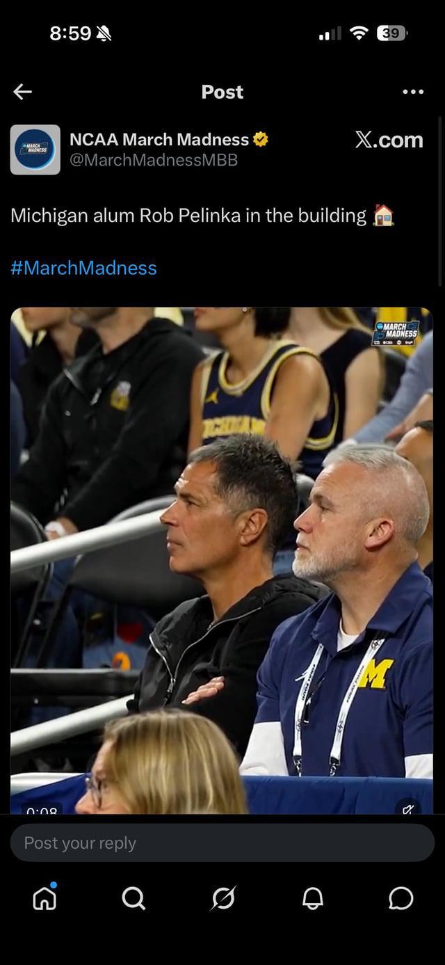 Rob Pelinka上周出现在密歇根对阵威斯康星的Big Ten锦标赛现场。湖人总经理没坐包厢,混在观众席里看完了整场,照片被球迷发到Reddit后迅速发酵。