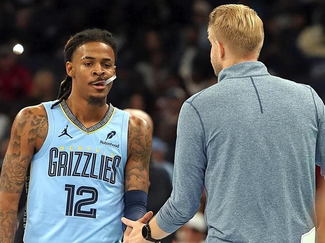 不过,自从莫兰特签下这份顶薪合同之后, 他就彻底放飞了自我!赛场之上,莫兰特一招鲜吃遍天见谁都想隔扣,打法简单粗暴导致伤病频发;赛场之外,莫兰特交友不慎屡屡触碰联盟红线!就这样,莫兰特从“腰王”变“枪王”,三天两头被肖华谈话,还因此两次累计禁赛33场,直接禁赛损失超过820万美金。同时,莫兰特未能触发指定新秀顶薪合同,5年2.33亿美金变成5年1.97亿美金,间接损失达到3600万美金。漫漫人生路,跌倒不可怕,可怕的是莫兰特仿佛丧失了从跌倒的地方爬起来的勇气。