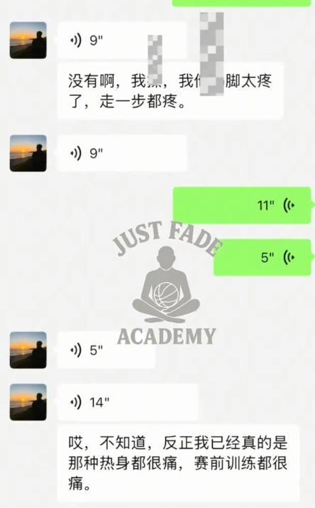 这个消息是胡明轩本人透露的,他在和朋友的聊天中表示,他的脚太疼了,走一步都疼、真的是那种热身都很痛,赛前训练都很痛。