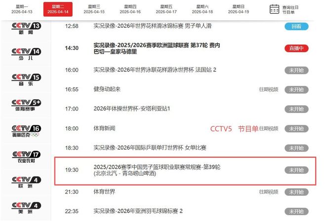 抖音短视频:《@CBA》中蓝联:《2025-2026赛季CBA联赛常规赛第38轮综述》2026年4月14日央视网:《CCTV-5体育频道高清直播》