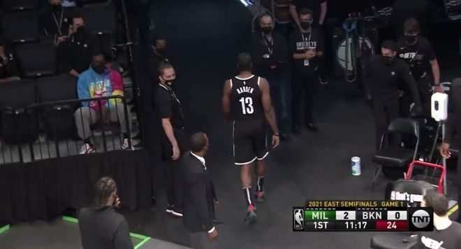 次轮G1对阵雄鹿,悲剧再次上演,比赛开始仅43秒,哈登就在一次突破后就捂着自己的右大腿后侧,一瘸一拐地返回了更衣室。
