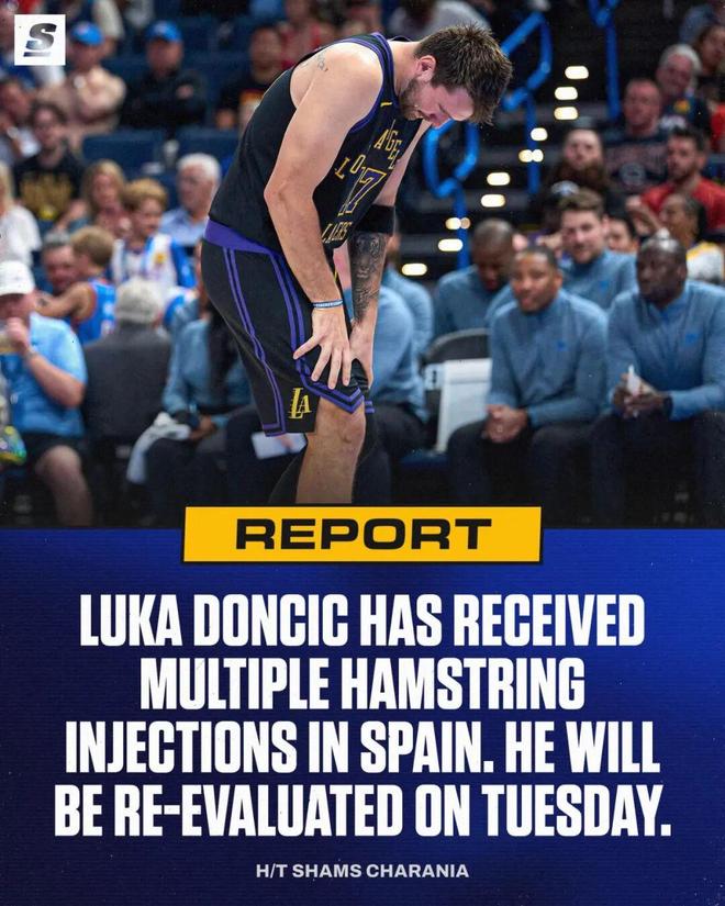 Shams表示,据他了解,东契奇上周大部分时间都在西班牙,他的腿筋接受了多次注射治疗,回到洛杉矶后,湖人将对他进行重新评估。