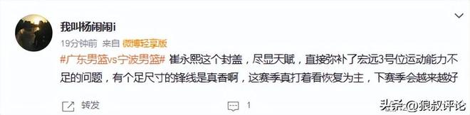 本场比赛的第四节,崔永熙成为外界的关注的焦点,宁波外援杰克逊在他头上命中不讲理的三分强行续命,这让不少广东球迷想起了被绝杀痛苦时刻。