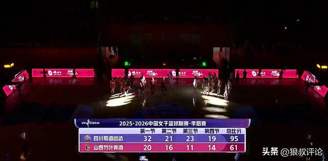 第三节,山西女篮单节只得到11分,一度落后29分,末节随着分差越来越大,比赛提前进入到垃圾时间,最终,四川女篮95-61山西女篮,取得总决赛开门红。