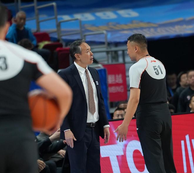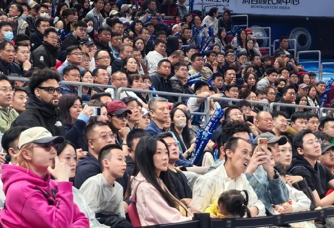 中国男篮主教练郭士强到场观战,但没有坐在VIP席、场边而是在球迷的看台。