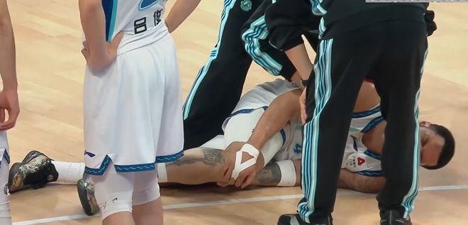 第三节韦瑟斯庞疑似右膝受伤,他被搀扶下场一瘸一拐的。