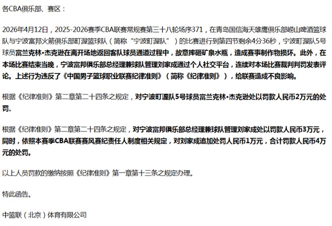 宁波队在对阵青岛的比赛最后是以一分的的分差输给了青岛队,宁波队的外援杰克逊由于当众摔矿泉水瓶,所以也是遭受到了CBA的重罚,被罚款4万元,最近宁波队遭遇了一波连败,可能大家的内心当中都是有着一些不爽的,但是从上个赛季的鱼腩球队一下到了季后赛球队,这个赛季的宁波队真的迎来了非常大的逆袭,也是被称为一匹黑马,虽然说最近贝兹利离队,但是在季后赛宁波队还是有着非常多的可能!