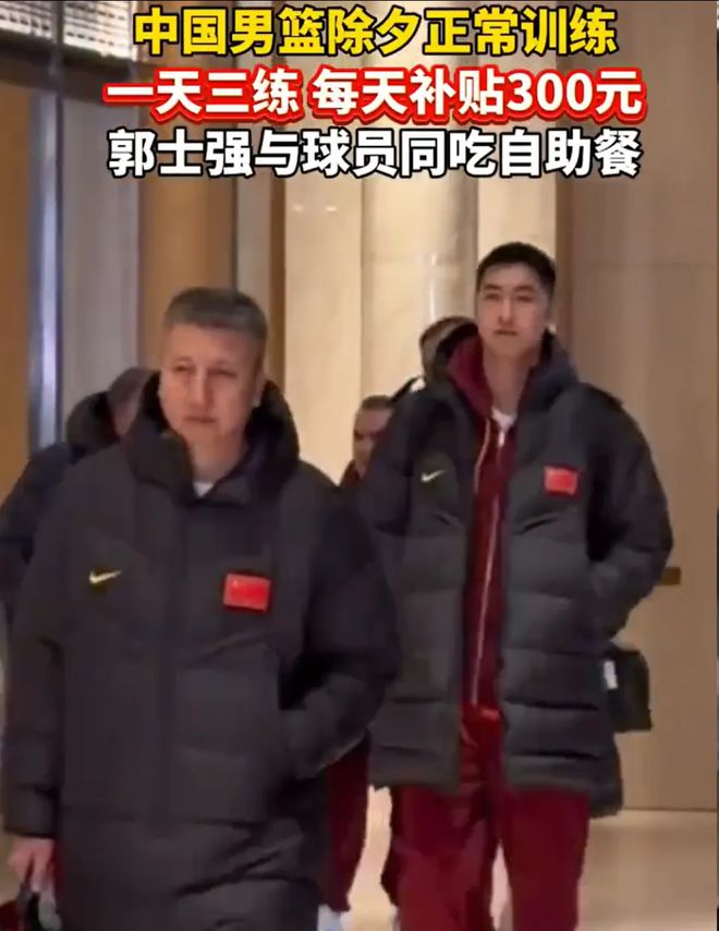 为了备战第二窗口期的比赛,中国男篮在2月5日至2月23日开启集训,因为这期间刚好包含春节假期,国家队的球员们也没有放假。此前有媒体报道,中国男篮甚至除夕还在训练,坚持一天三练,每天只补贴300元,作为主教练的郭士强也跟球员同吃自助餐。