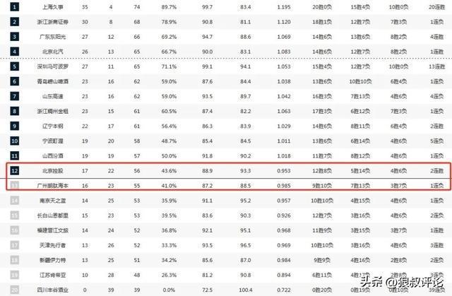 CBA最新排名!前5基本确定,辽宁紧咬第8名,北控锁12,6队被淘汰