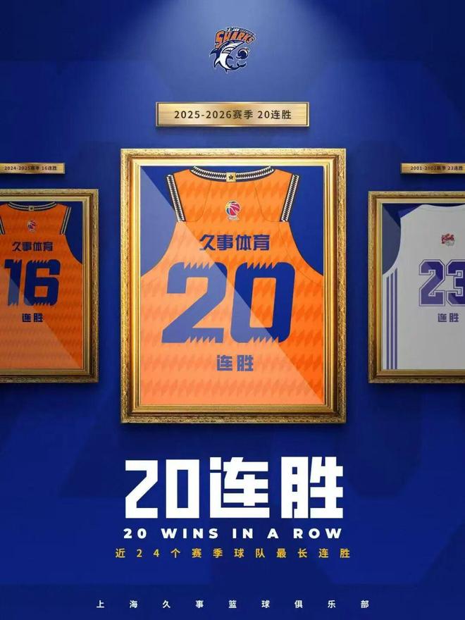 此役王哲林10投9中,拿下20分16篮板,上海男篮艰难地拿到20连胜,这也是球队近24个赛季取得的最长连胜!