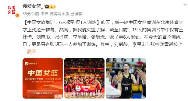 北京时间4月16日,中国篮协此前公布了中国女篮的19人集训名单,如今根据媒体人我爱女篮报道,目前只有张子宇与刘禹彤等6人报到,且首日仅有张明珠一人参加训练。
