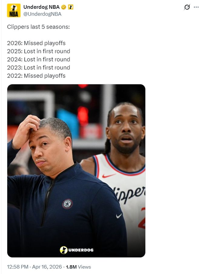快船在最近的五个赛季,2022年无缘季后赛、2023年止步首轮、2024年止步首轮、2025年止步首轮、2026年无缘季后赛。