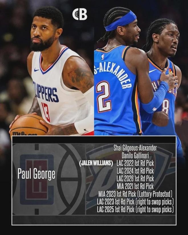 雷霆连续三年常规赛西部第一,2025年夺得NBA总冠军,今年依然是冠军大热。2024年夏天,保罗-乔治以4年2.12亿美元加盟76人。当时乔治是自由身,所以快船没得到任何筹码。不过快船也算躲过一劫,没给乔治顶薪合同。
