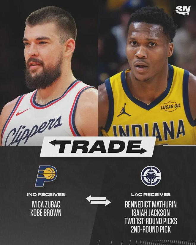 那快船今年还有首轮签吗?只能说理论上有。今年2月6日,步行者送出马瑟林 、以赛亚-杰克逊、2026年首轮签(双重保护)、2029年首轮签和2028年次轮签,5换2得到祖巴茨和科比-布朗。如果步行者抽到第5-9顺位,要送给快船。