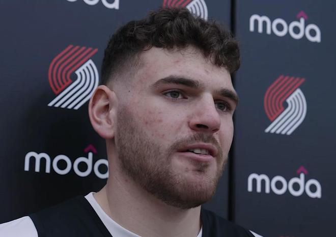 北京时间4月17日,在NBA季后赛首轮对阵马刺队赛前,开拓者中锋克林根接受了媒体的采访。
