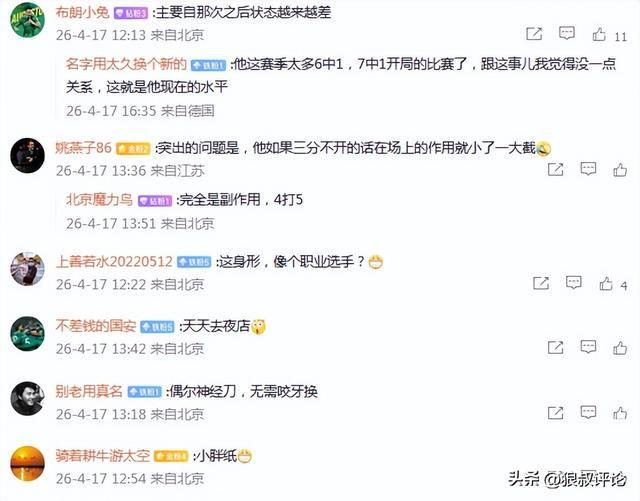 球迷对于斯佩尔曼的状态同样给出了质疑的态度,他这赛季太多6中1,7中1开局的比赛了,跟这事儿我觉得没一点关系,这就是他现在的水平。