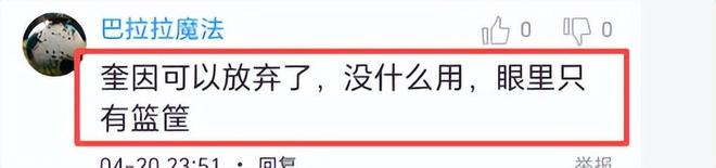 其实奎因也是广东队一个不稳定因素,近两场比赛他在外线疯狂浪投,一共出手18次,只中4球,命中率只有22%,这样的命中率也想赢球?真是笑话,那些赞美奎因的球迷,也是太随便了。严格地说奎因不是一个冠军级别的外援,四个外援都没有三分,如果广东队的目标真是争冠的话,这四个外援都不能续约,重新再选外援。球迷说得好:奎因可以放弃了,没什么用,眼里只有篮筐。个人完全赞成这个观点。不知大家看法如何?