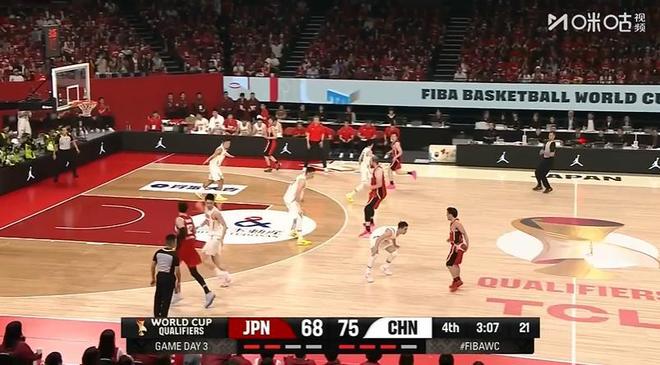 下半场比赛,中国队在第三节开局上演绝佳表现,直接打了日本队一个13比0冲击波,将分差追至1分。随后中国队追平比分后,赵继伟等三分连续命中,将比分实现反超,第三节比赛结束后,中国队实现比分反超,58:56领先。