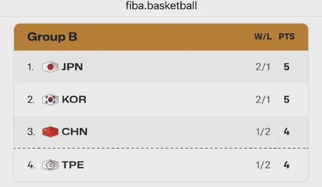 目前为止,中国男篮和中国台北队均是1胜2负,虽然中国男篮凭借净胜分优势暂时位列B组第三但输球就会被反超,所以接下来的对决同样不容有失,是没有任何借口必须赢下的比赛。