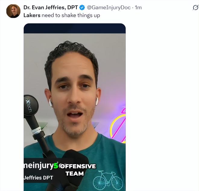 埃文-杰里弗斯晒出东契奇摊手的一幕写道:敲门,谁在那儿?湖人的季后赛对决吗?
