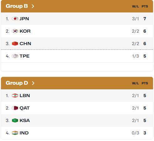 目前B组前三名为日本、韩国、中国,第四名是中国台北,D组前三名为黎巴嫩、卡塔尔、沙特阿拉伯,第四名是印度。考虑到中国台北和印度很可能无法向上爬升,中国男篮将从第四窗口开始面对黎巴嫩、卡塔尔、沙特三个对手,届时中东地区的局势也将影响中国男篮的赛程安排。