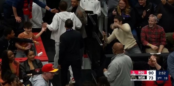 北京时间3月3日,在奇才主场对阵火箭的比赛,第三节后半段因伤休战的特雷-杨在场下观战,他不满火箭球员伊森推人,特雷-杨为队友出头被驱逐离场,而伊森两次推人吃两T也被驱逐。