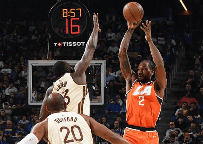 半场比赛战罢,勇士56-42领先快船14分。下半场比赛开始,易边再战,霍福德篮下梦幻脚步晃开防守,节奏上篮揭开第三节比赛序幕,伦纳德标志性的急停中距离予以还击,伦纳德个人能力强攻篮下,打成一个2+1,霍福德宝刀未老,内线高举高打制造杀伤,站上罚球线两罚全中,大洛佩斯的转身中距离抹掉防守,飞身抛投打进一球,追梦格林的弧顶超远三分球一箭穿心,桑德斯45度角定点三分开火同样也有,进入第三节后半程,场上局面有所变数,小卡多点开花,随哈登交易而来的加兰也逐渐回暖,快船一波反击高潮,将劣势缩小到5分以内。