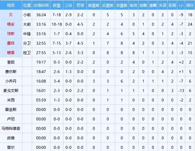 鹈鹕方面,锡安空砍24分4篮板,虽内线冲击力惊人,但面对艾顿+詹姆斯双重围堵,命中率跌至46%;特雷·墨菲21分8篮板,外线4记三分亮眼,但末节彻底失准;贝得18分3篮板,穆雷15分8篮板9助攻逼近三双,四人合力难敌湖人末节集体觉醒,终致溃败。