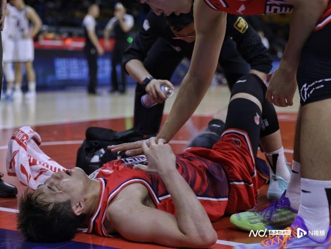 郭艾伦在3月5日的CBA比赛中重伤倒地,痛苦不已。南都N视频记者 黎湛均摄