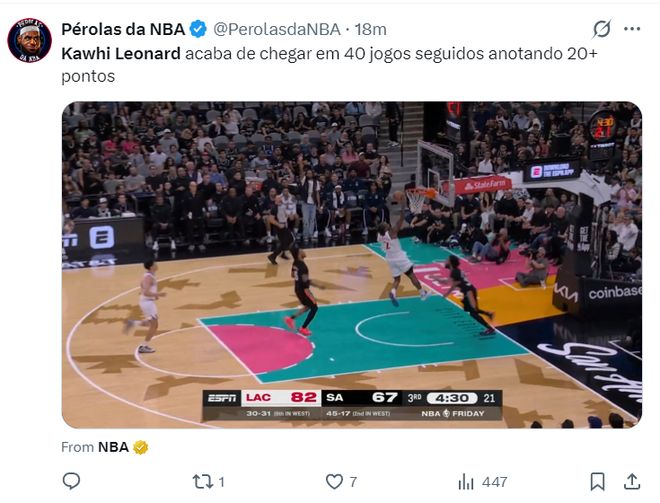 1.伦纳德连续40场比赛20+刷新个人生涯新高;