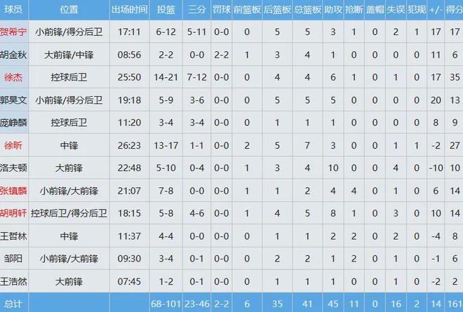 本赛季至今,广东队17胜6负联盟第三,广厦队和上海队分列前二,山东队第四,青岛队第五,深圳队第六,北京队第七,浙江队第八,宁波队第九,山西队第十,广州队第11,辽宁队第12。