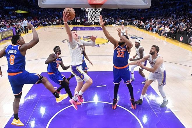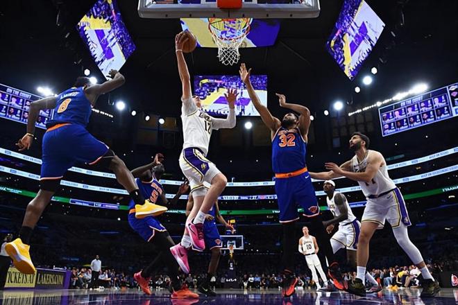 在此前的一场NBA常规赛中,主场作战的洛杉矶湖人以110比97战胜了纽约尼克斯。本场比赛后,拿下了两连胜的湖人的战绩提升到了39胜25负,排名也是反超了明尼苏达森林狼提升到了西部第5位,与身前的丹佛掘金的胜场差为1场,与身后的森林狼的胜场差为0场;而在最近3场比赛中输掉了两场的尼克斯的战绩则是下滑到了41胜24负,继续排名东部第3位,与身前的波士顿凯尔特人的胜场差为2.5场,与身后的克利夫兰骑士的胜场差为1.5场。