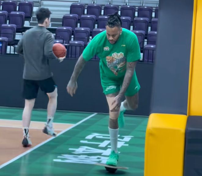 当辽宁踩场的时候,各个球员还是比较开心的。特别是第二阶段已经三连胜, 再加上第一阶段一共是五连胜。而且莫兰德还穿了三连冠的衣服,他肯定希望保持目前好的状态,现在乌戈执教之后,对于莫兰德的带动是巨大的,这段时间他都可以制霸篮下。
