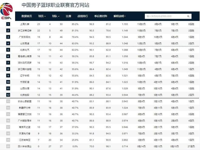 CBA最新排名!北京爆冷输球广东大胜,辽宁高歌猛进上海势不可挡