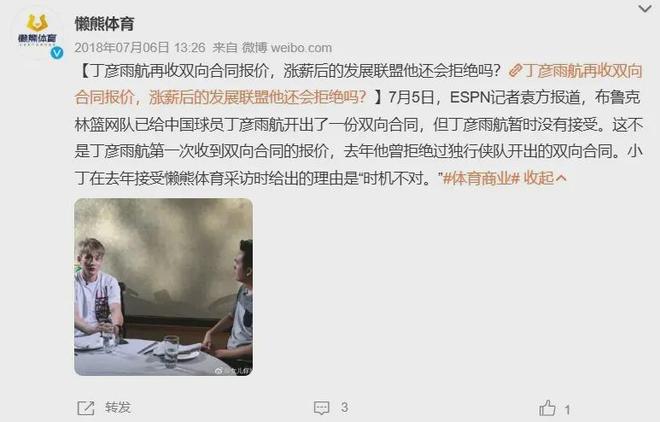 丁彦雨航也曾尝试过冲击NBA,并分别获得过独行侠和篮网提供的双向合同,但被他全部拒绝。