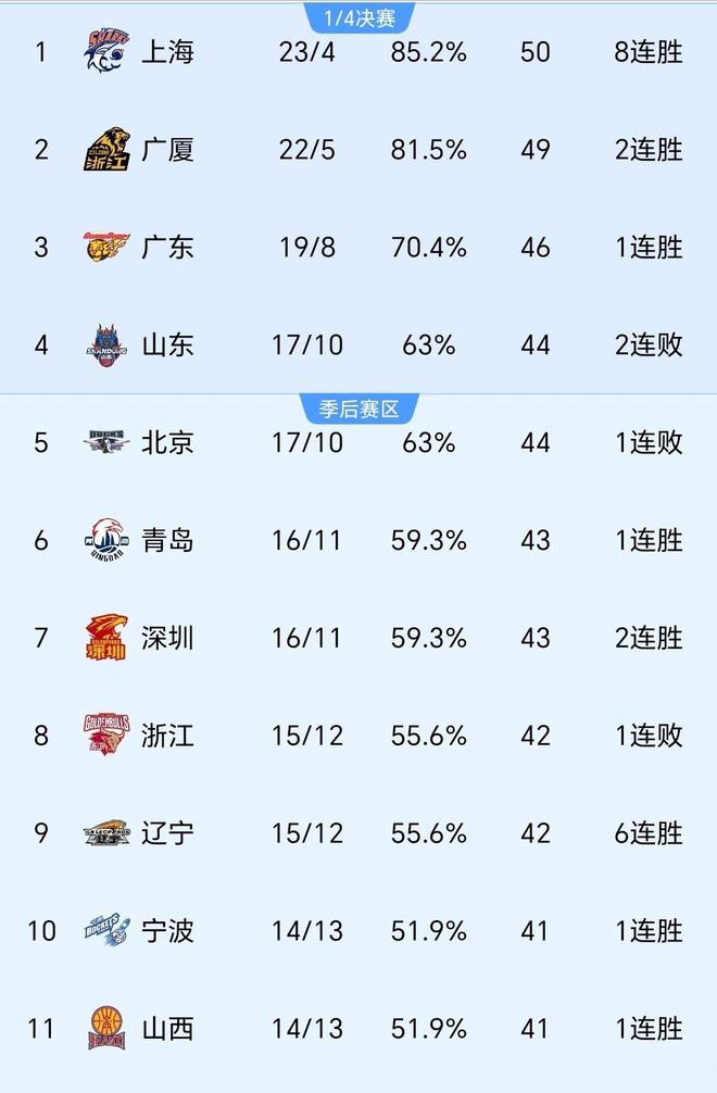 而四队后续赛程均无明显软肋:山东将迎战浙江广厦,北京对阵辽宁本钢,青岛面对广东宏远,深圳则要硬刚上海久事,场场皆为强强对话,容不得半点闪失。