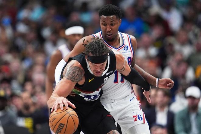 约基奇8+7+14创中锋历史第一!掘金双杀76人升第五 布劳恩22分
