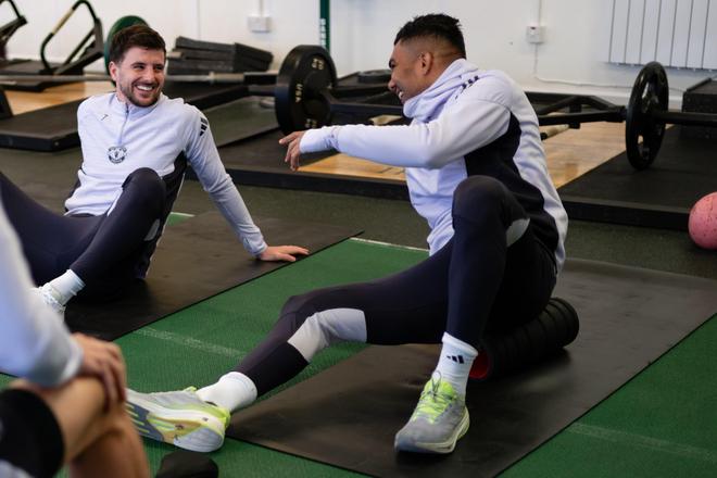 训练只对媒体开放了15分钟,但已足够看出卡里克和他的教练组更新了曼联的训练方式。总体而言,曼联球员在卡顿庄园进行了三次高强度场地训练,随后是严格的健身房力量训练,此前球队已经休战超过两周。