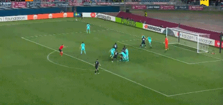 第21分钟,米兰达侧身凌空抽射,门将扑救建功