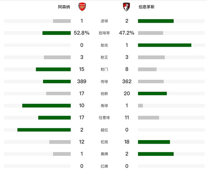 主场爆冷!阿森纳1-2伯恩茅斯 近9轮英超首败 多赛2场领先曼城9分