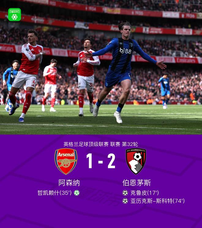 剑南春丨阿森纳1-2伯恩茅斯,哲凯赖什点射,克鲁皮、斯科特建功
