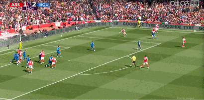 第26分钟,克鲁皮完成射门,皮球被加布里埃尔用头挡出