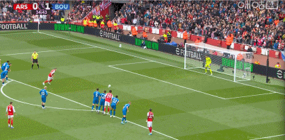 第35分钟,加布角球机会造点,哲凯赖什点射破门,阿森纳1-1伯恩茅斯