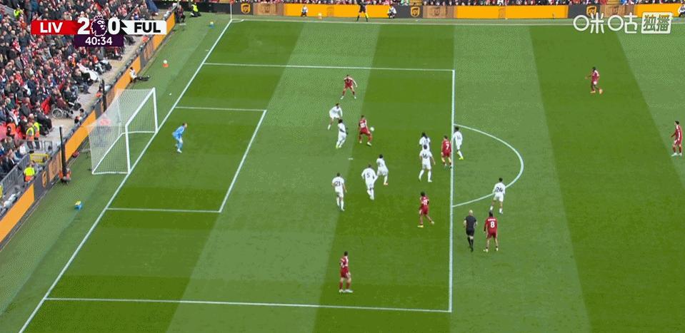 第40分钟,萨拉赫禁区右侧兜射破门!利物浦2-0