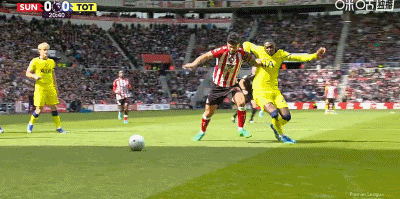一人搅乱防线,桑德兰前锋布罗贝伊上半场造热刺3名后卫染黄